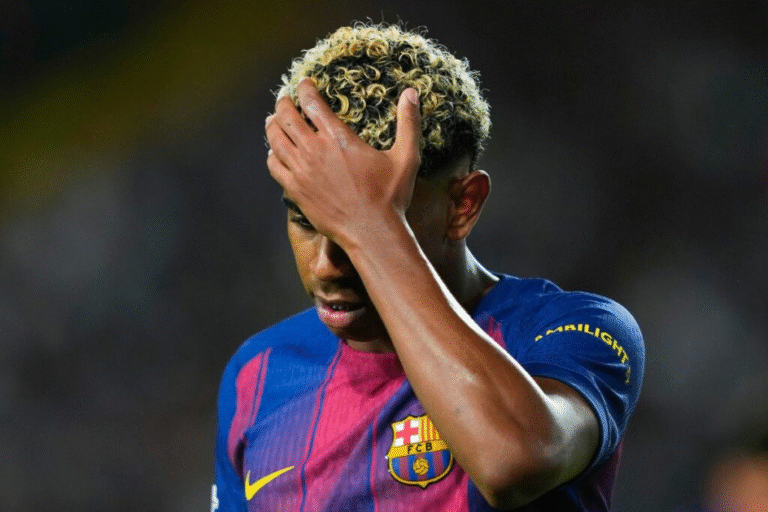 Lamine Yamal lamenta la derrota del FC Barcelona ante el PSG por la Champions League 2024-25. • EFE.