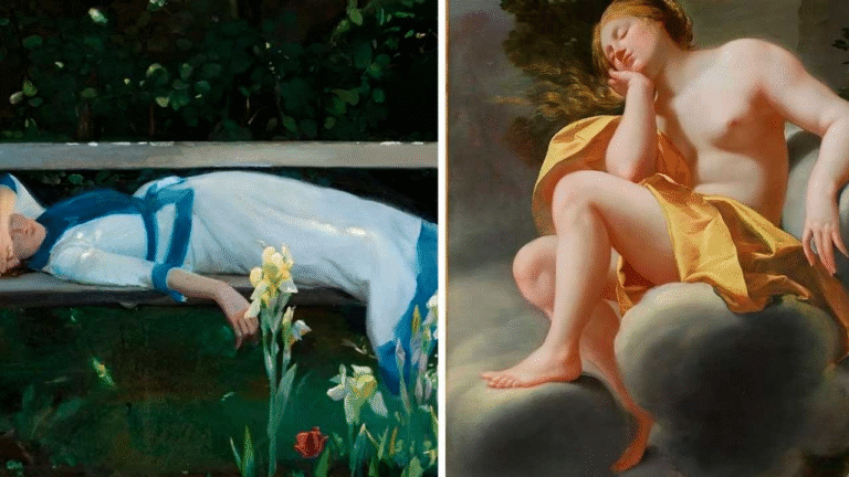 ‘La siesta’ (1890), de Michael Ancher, © Art Museums of Skagen, y ‘Venus durmiendo sobre las nubes’ (1630), de Simon Vouet, © Szépművészeti Múzeum/Museum of Fine Arts. Foto cortesía Museo Marmottan-Monet