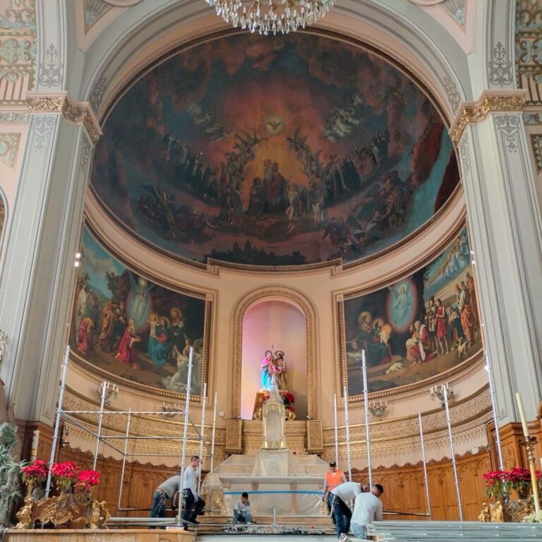 El INBAL restauró el mural monumental de la Parroquia de la Sagrada Familia, obra del jesuita Gonzalo Carrasco, devolviéndole estabilidad, color y visibilidad a una de las pinturas religiosas más importantes del siglo XX en la Ciudad de México.