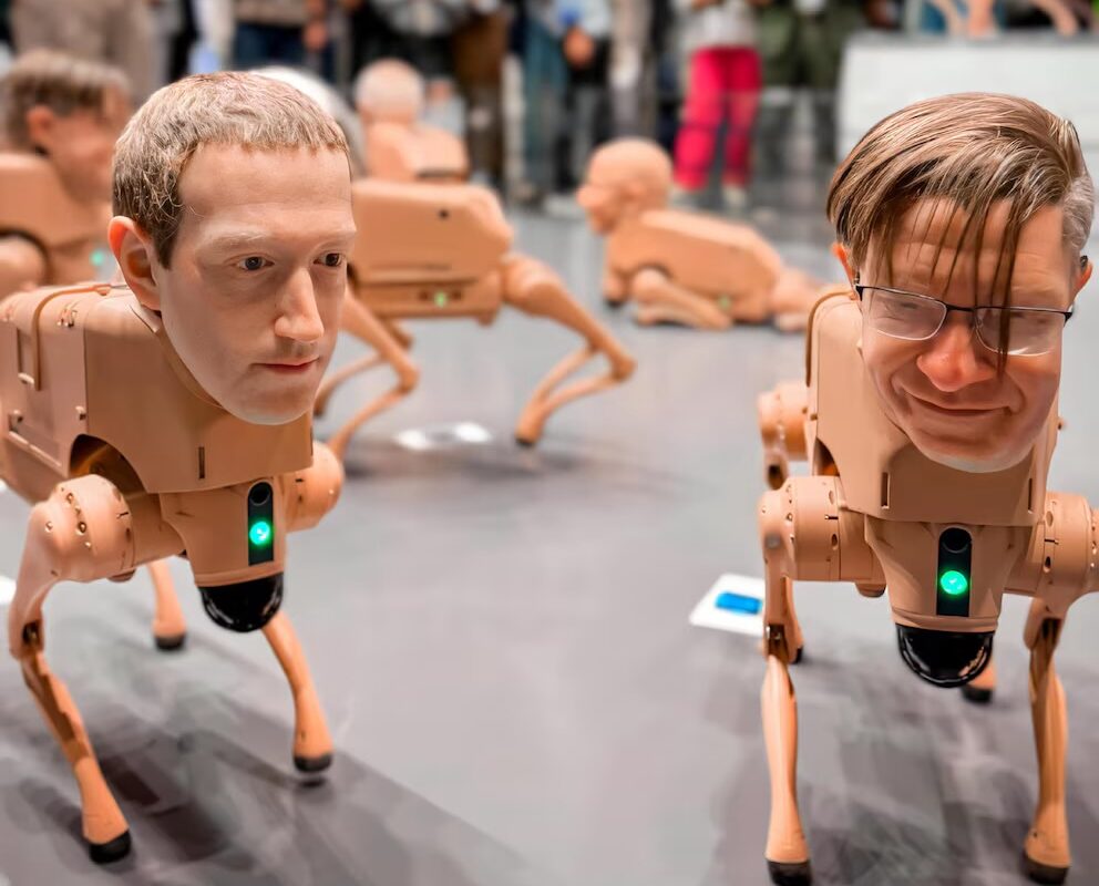 Miami , Florida .- Art Basel Miami Beach inició con una de las piezas más comentadas de la edición: tres perros robóticos con cabezas hiperrealistas de Elon Musk, Mark Zuckerberg y Andy Warhol. La instalación Regular Animals, del artista digital Mike “Beeple” Winkelmann, se convirtió en uno de los puntos de mayor atención dentro de la feria y detonó una discusión amplia sobre los límites del arte en la era tecnológica.