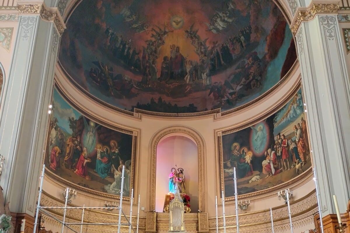Ciudad de México .- El mural de la Sagrada Familia en la Gloria del Cielo, ubicado en la bóveda del ábside de la Parroquia de la Sagrada Familia, constituye el eje artístico del recinto y uno de los conjuntos pictóricos sacros más relevantes de su época en México.