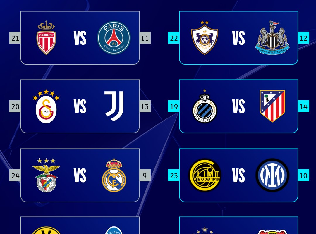 La UEFA llevó a cabo el sorteo del Playoff de la Champions League 2025-2026 en su sede de Nyon, Suiza, quedando definidos los emparejamientos de la fase de eliminación directa que antecede a los octavos de final del torneo, cuya final se disputará en Budapest en 2026.
