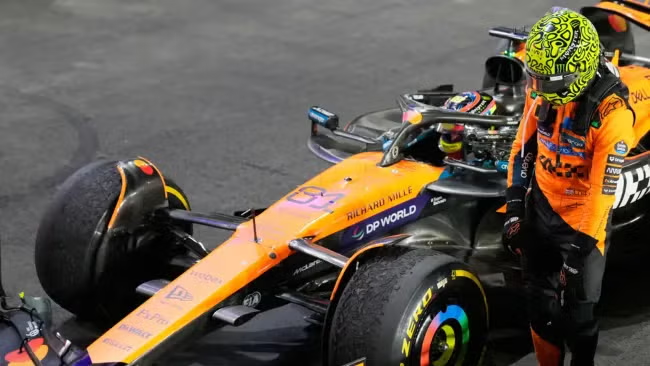 Lando Norris (McLaren) durante una práctica rumbo al Gran Premio de Abu Dabi, el 5 de diciembre de 2025. Foto Ap