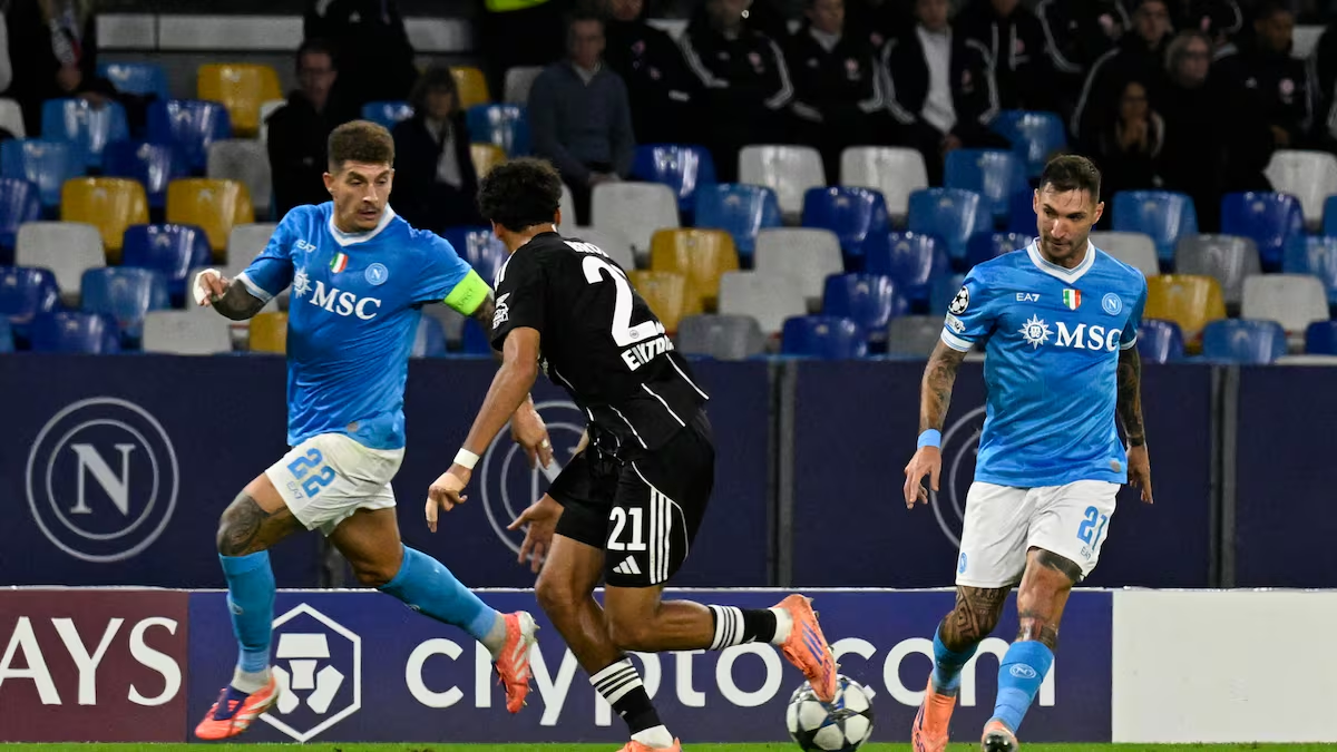 Nápoles, Italia | 4 de noviembre de 2025.-En el Estadio Diego Armando Maradona, el Napoli y el Eintracht Frankfurt empataron 0-0 en un encuentro intenso y equilibrado correspondiente a la fase de grupos de la UEFA Champions League 2025.
