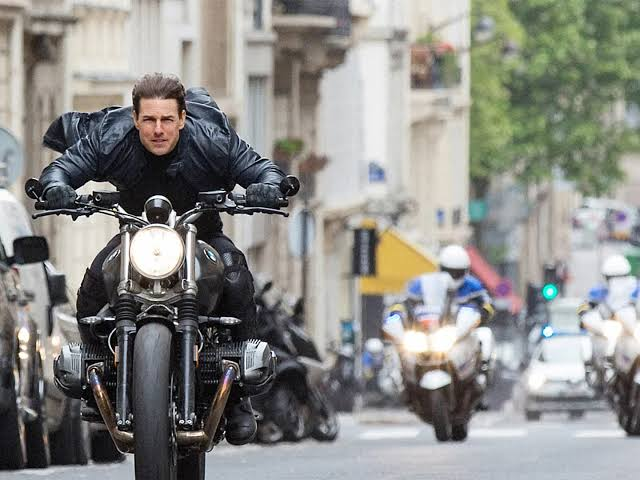 Otra escena de alto riesgo en la misma película fue la persecución en motocicleta por las calles de París. Sin casco y entre el tráfico real, Cruise zigzaguea a alta velocidad alrededor del Arco del Triunfo, desafiando la gravedad y el sentido común con cada giro y maniobra.