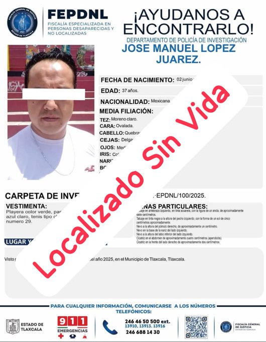 José Manuel había sido reportado como desaparecido desde el pasado 4 de julio, día en que salió de su domicilio en la capital tlaxcalteca a bordo de su vehículo. La desaparición movilizó a familiares, compañeros y autoridades, quienes intensificaron la búsqueda tras hallarse su automóvil abandonado en Atlixco, Puebla.