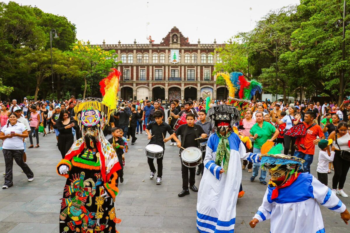 La celebración comenzó incluso antes del concierto, con la presencia de los tradicionales Chinelos, quienes llenaron de color, alegría e identidad las calles del centro histórico.