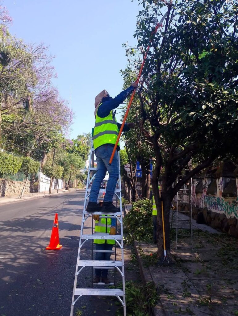 Cuatro brigadas de la Dirección de Parques y Jardines se enfocaron en avenida Morelos y las calles Nezahualcóyotl, Degollado, Arista, Álvaro Obregón, Lerdo de Tejada y Ricardo Linares. Se realizaron podas estéticas y de formación, retiro de desecho vegetal y trabajos de jardinería que devolvieron vitalidad a las áreas verdes.