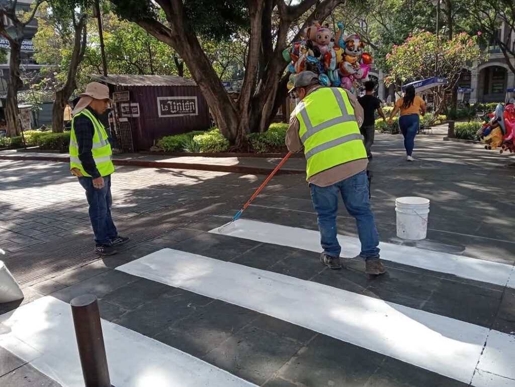 La Dirección de Infraestructura Urbana, apoyada por dos brigadas, balizó pasos peatonales y guarniciones para mejorar la seguridad vial. También pintó recintos y retiró publicidad en postes que afectaba la imagen urbana. Los puntos intervenidos incluyeron Jardín Juárez, alrededores del Palacio de Cortés, y vialidades como Gutenberg, Himno Nacional, Plutarco Elías Calles, Cuauhtemotzin, Rayón, Abasolo y el tramo de avenida Morelos cercano a la Glorieta del Niño Artillero.