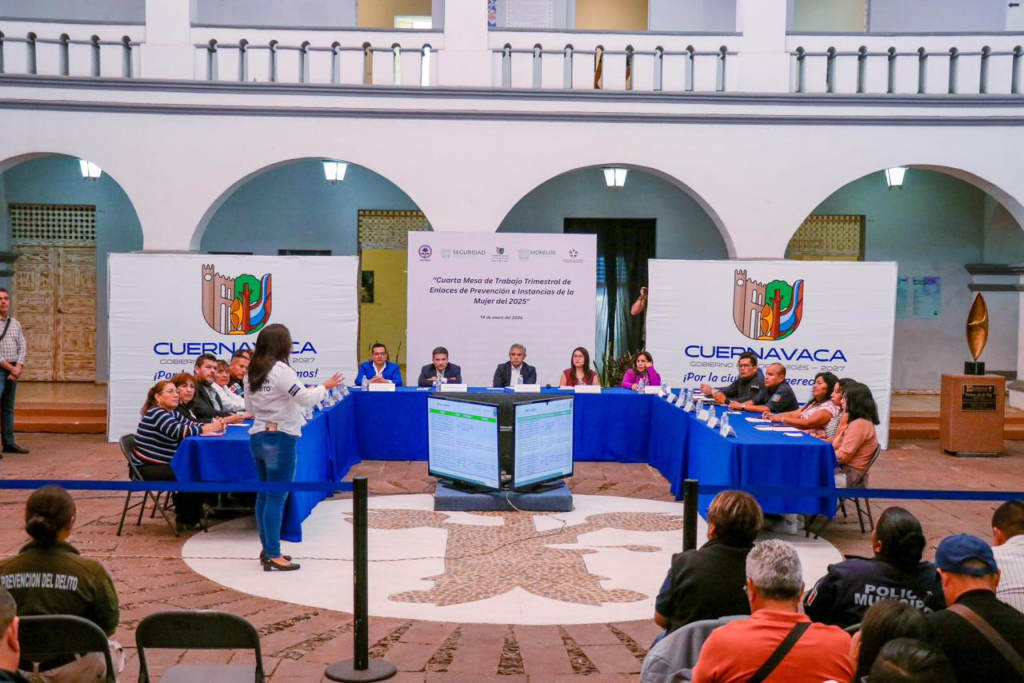 Cuernavaca, Morelos, 15 de enero de 2026.— El presidente municipal de Cuernavaca, José Luis Urióstegui Salgado, encabezó la Cuarta Mesa de Trabajo Trimestral de Enlaces de Prevención e Instancias de la Mujer, Región 1, con el objetivo de reforzar la coordinación interinstitucional en materia de prevención del delito y de la violencia de género durante 2026.