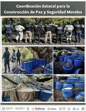 Yautepec, Mor., 11 de octubre de 2025. En una acción conjunta que representó un nuevo golpe contra la producción de drogas sintéticas en el oriente de Morelos, la Secretaría de Seguridad Pública estatal (SSPC Morelos) encabezó un operativo interinstitucional que derivó en el desmantelamiento de un narcolaboratorio instalado entre zonas boscosas y agrestes del municipio de Yautepec.