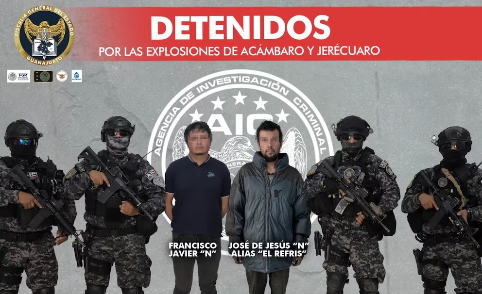 La Fiscalía General del Estado (FGE) de Guanajuato informó la detención de Francisco Javier “N” y José de Jesús “N”, alias «El Refris», presuntamente involucrados en las explosiones de coches bomba ocurridas en los municipios de Acámbaro y Jerécuaro. Ambos individuos habrían sido clave en los ataques y, según las autoridades, podrían estar vinculados con otros delitos en la zona de Laja-Bajío, donde continúan las investigaciones.