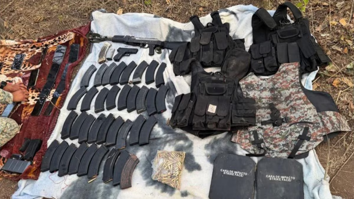 Durante el despliegue de seguridad, fuerzas federales localizaron y desmantelaron un campamento presuntamente utilizado para entrenamientos por una célula delictiva que opera en esa región. En el lugar fueron aseguradas armas de fuego, cartuchos útiles, dosis de droga, equipo táctico y diverso material presuntamente utilizado por la organización criminal.