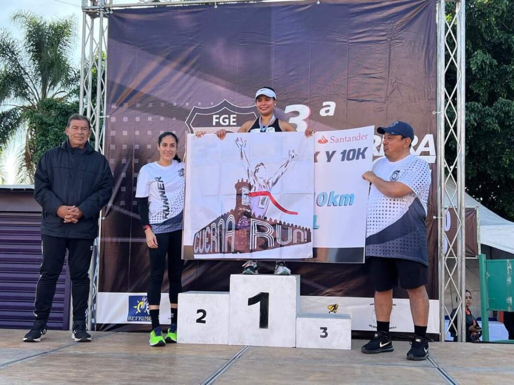 A poco más de dos horas de iniciada la Tercera Carrera Atlética que anualmente organiza la Fiscalía General de Morelos, su titular Uriel Carmona Gándara, acompañado de la ex clavadista olímpica Jashia Luna, en representación del Instituto del Deporte y Cultura Física de Morelos (INDEM), premió a los finalistas.