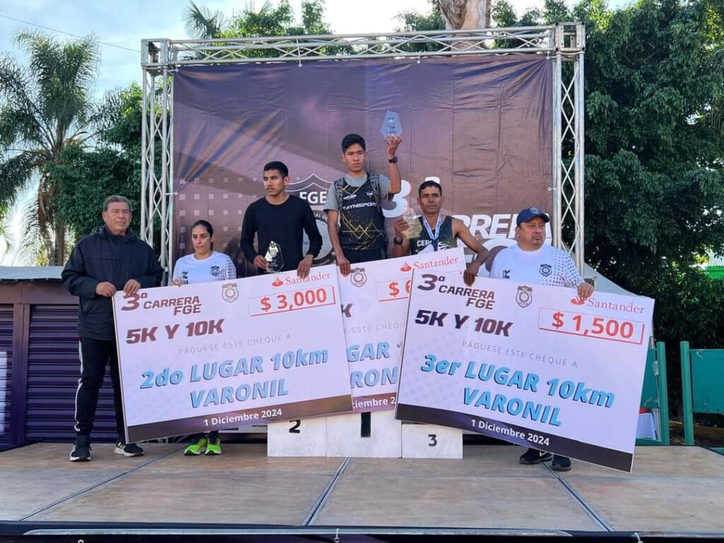 Mientras que en la categoría de 10 kilómetros se entregaron 6 mil pesos a los ganadores del primer lugar; 3 mil para el segundo y mil 500 para el tercero.