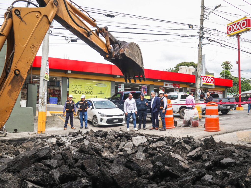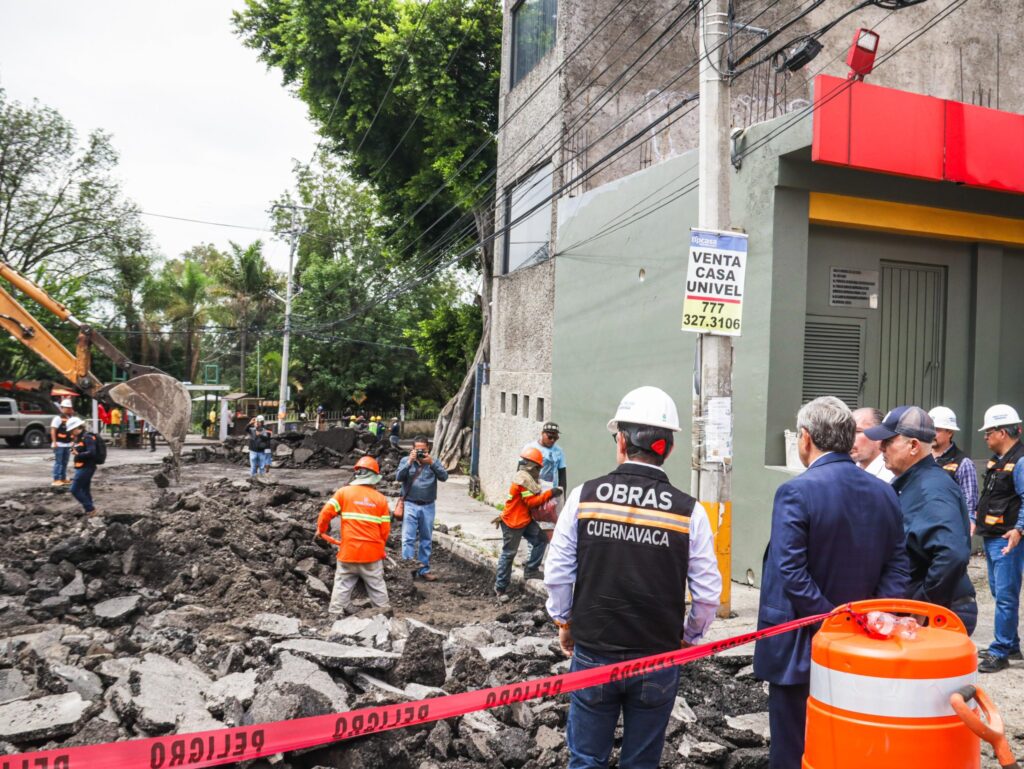Cuernavaca, Mor., 13 jun 2025.— Las primeras tormentas fuertes del verano dejaron su huella en la avenida Universidad, uno de los corredores más transitados de la capital morelense. Este viernes, el alcalde José Luis Urióstegui Salgado encabezó un recorrido de supervisión para constatar el avance de los trabajos de reparación en el tramo comprendido entre Camino Antiguo a Tepoztlán y calle Centenario, donde el pavimento sufrió una fractura severa a causa de la presión hídrica sobre la losa de concreto de más de dos décadas de antigüedad.