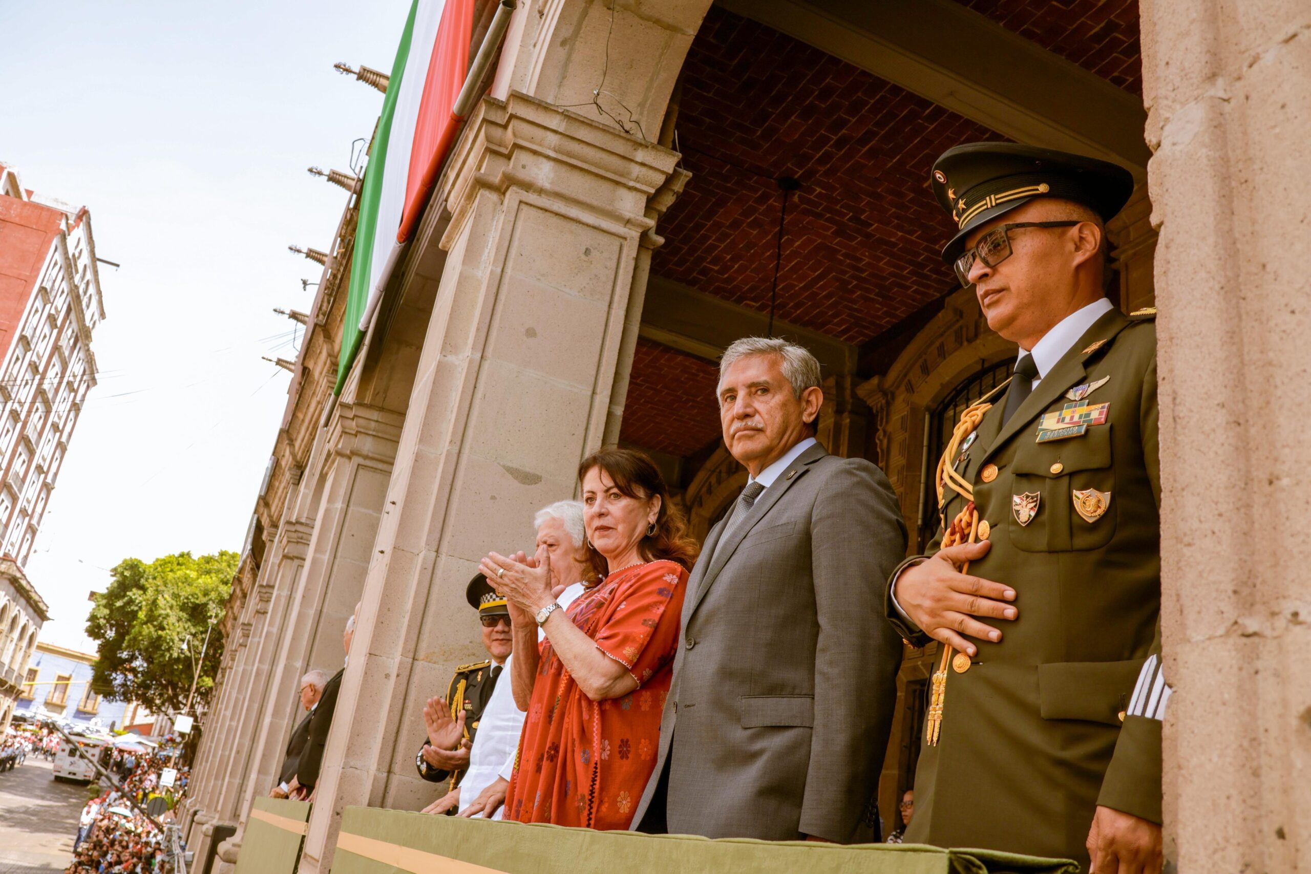 El alcalde participó en el izamiento de bandera y en el desfile cívico-militar por el 215 aniversario del inicio de la Independencia de México, acompañado por autoridades estatales y federales.