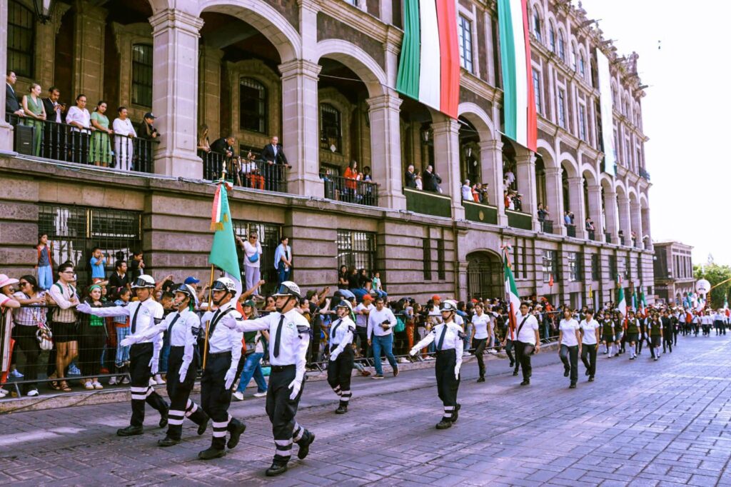 El recorrido reunió a alrededor de 5 mil 500 participantes entre contingentes militares y civiles, quienes desfilaron por las principales calles del Centro Histórico ante la presencia de miles de familias que se dieron cita para presenciar la tradicional conmemoración.