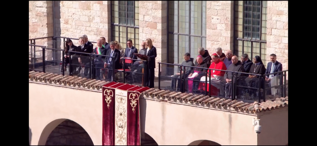 Assisi, Italia.– En el marco de la fiesta de San Francisco, patrono de Italia, la primera ministra Giorgia Meloni encabezó la ceremonia oficial en la Basílica Superior de Assisi, donde lanzó un mensaje de paz, respeto y diálogo frente a los desafíos globales y las divisiones políticas.