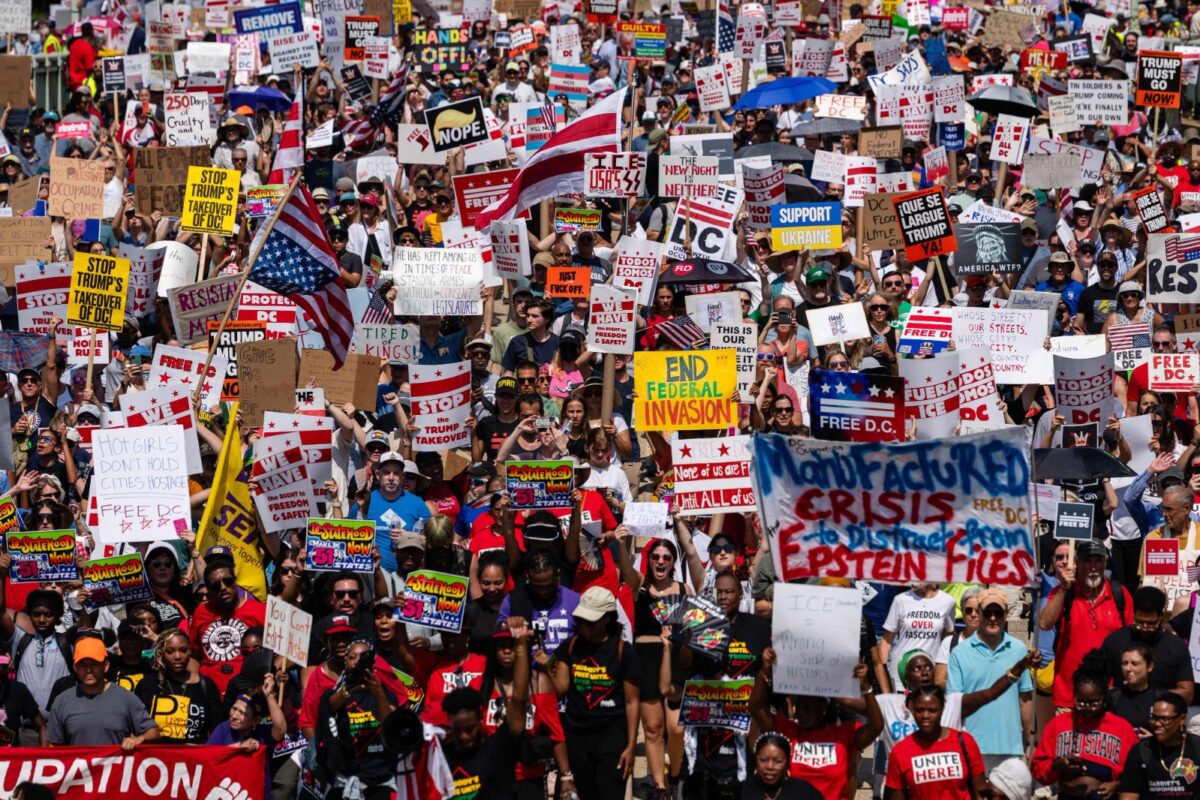 Washington, D.C.— Miles de manifestantes recorrieron este sábado las calles de la capital estadounidense en rechazo al control federal sobre la policía local y al despliegue de la Guardia Nacional, medida que cumple ya cuatro semanas bajo una declaratoria de emergencia de la Casa Blanca.