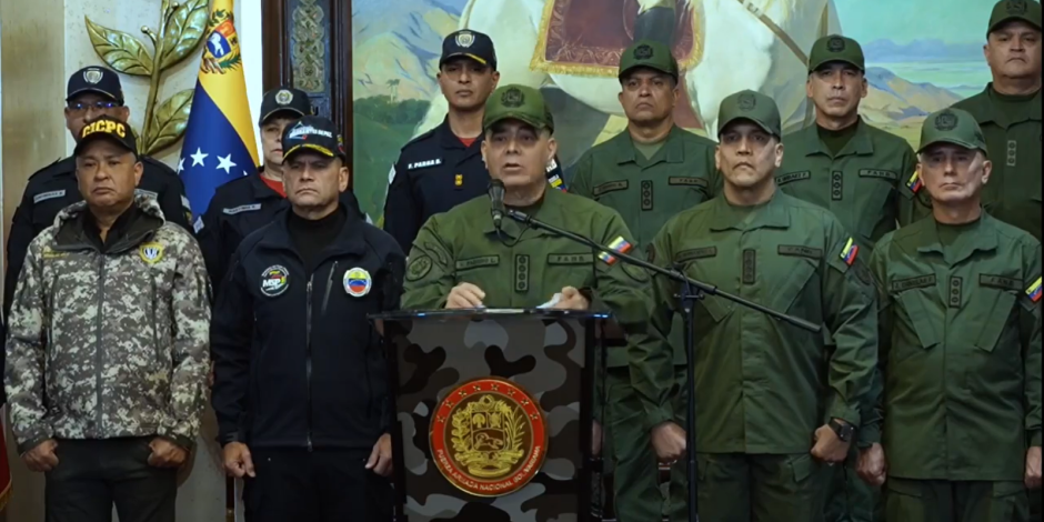 “Ratificamos nuestra absoluta lealtad al ciudadano Nicolás Maduro Moros. Estos llamados fatuos e irracionales buscan quebrar nuestra unidad e institucionalidad, pero jamás lo lograrán”, expresó Vladimir Padrino durante una transmisión por la televisión estatal, donde estuvo flanqueado por los altos mandos militares y policiales. Padrino López hizo hincapié en la cohesión y disciplina que caracteriza a la Fuerza Armada Nacional Bolivariana (FANB), destacando que la institución se mantendrá firme frente a cualquier intento de desestabilización.