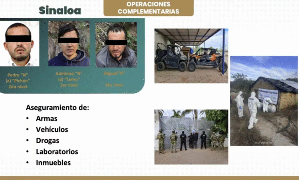 Choix, Sinaloa, 30 de noviembre de 2025. Pedro Inzunza Coronel, alias El Pichón, fue abatido durante un enfrentamiento entre elementos de la Marina Armada de México y un grupo armado en la sierra de Choix. La Secretaría de Seguridad y Protección Ciudadana (SSPC) informó que el choque ocurrió después de que personal naval localizó laboratorios e inmuebles vinculados a actividades ilícitas.