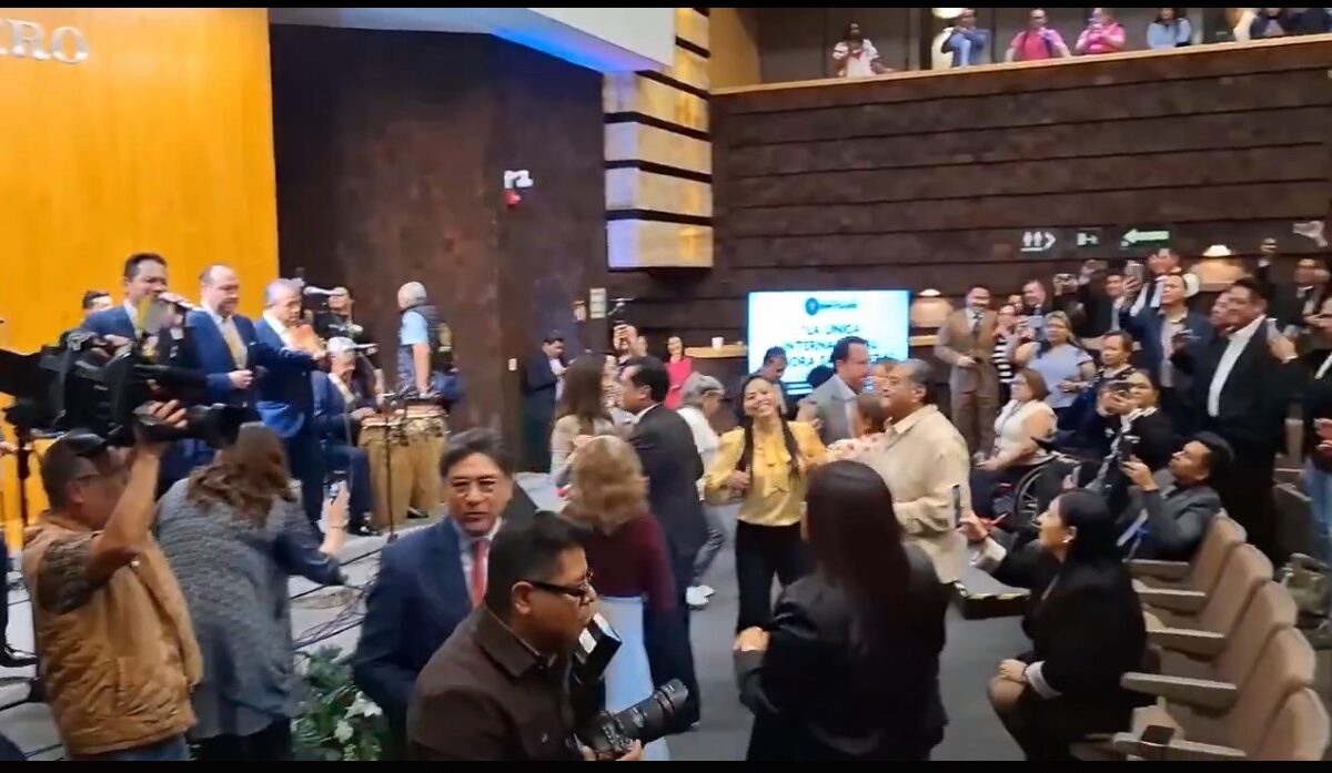Mientras en el pleno se discutían reformas relacionadas con salud mental y un reconocimiento al Heroico Colegio Militar, los curules comenzaron a vaciarse. En el auditorio, el ambiente era muy distinto: música en vivo, aplausos y decenas de funcionarios siguiendo los acordes de La Boa, Perfume de Gardenias y El Mudo.