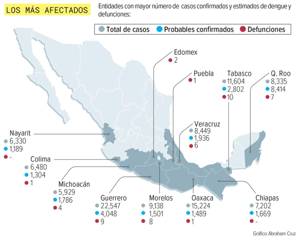 Dengue crece 324%; van casi 24 mil casos; suman 49 decesos
