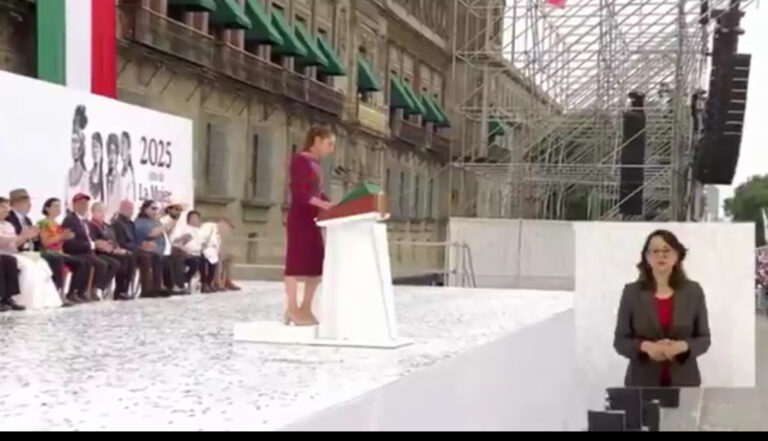 “Desde este Zócalo histórico, reafirmamos nuestro compromiso con la Cuarta Transformación de la vida pública de México. Una transformación que le pertenece al pueblo. Estoy segura, porque lo escuchamos en las plazas a lo largo de toda la República, vamos por el camino correcto. Aquí estamos, de pie, con la fuerza de nuestra historia, con el orgullo de nuestro presente y con la esperanza de nuestro porvenir. Como lo dije desde el primer momento ante ustedes, no les voy a fallar.