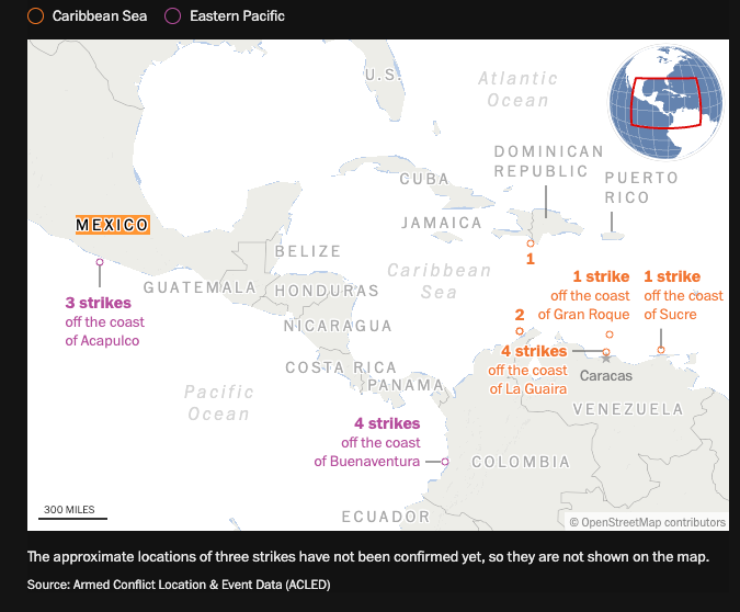 De acuerdo con el diario estadounidense, tres de los 19 ataques ejecutados por fuerzas de Estados Unidos contra lanchas presuntamente vinculadas al narcotráfico ocurrieron en aguas cercanas a Acapulco, Guerrero.