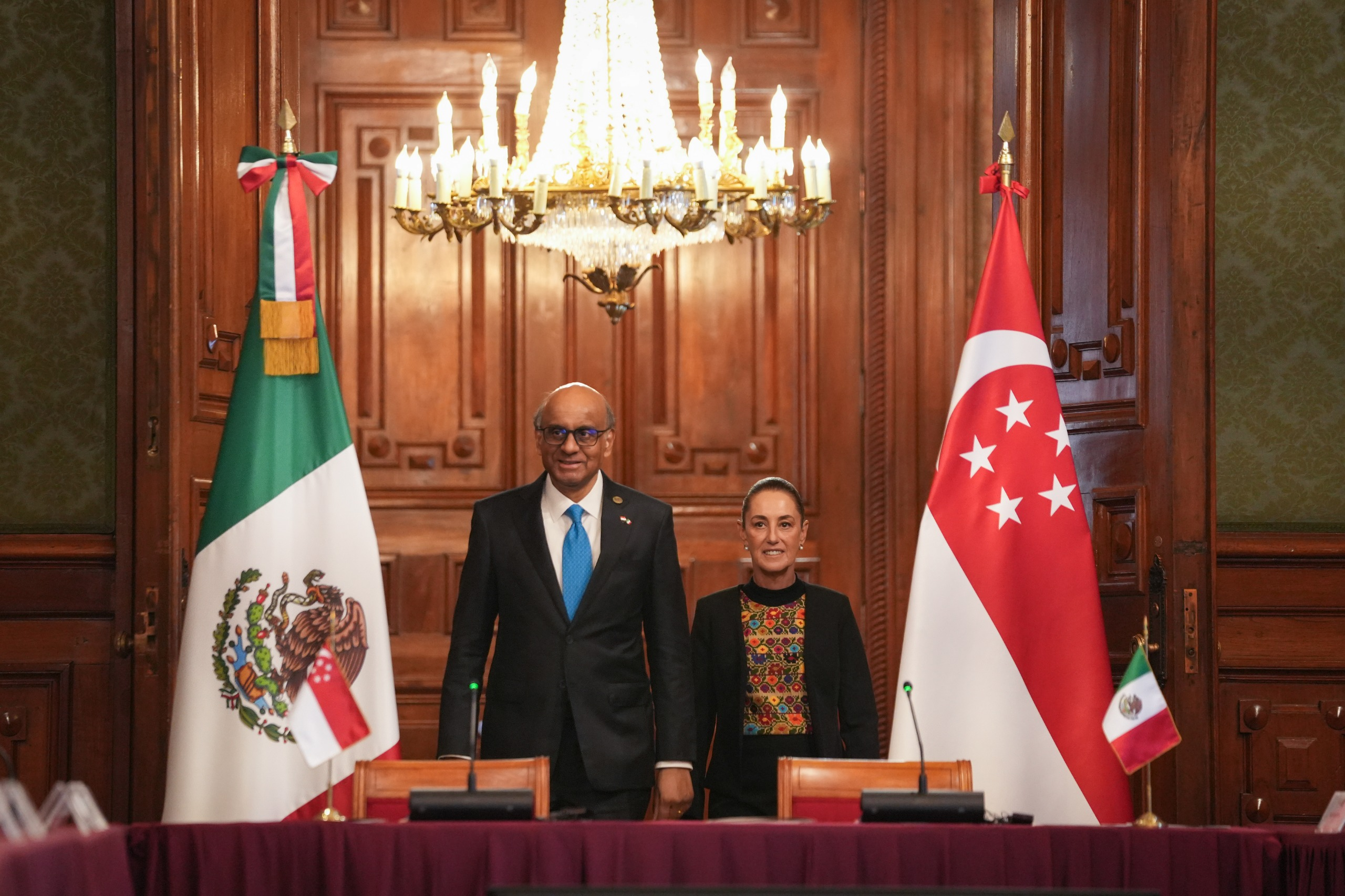Ciudad de México, 2 de diciembre de 2025. México y Singapur anunciaron este lunes el fortalecimiento de su cooperación económica, comercial y digital, en el marco del 50 aniversario del inicio de sus relaciones diplomáticas. La presidenta de México, Claudia Sheinbaum, y el primer ministro de Singapur, Tharman Shanmugaratnam, ofrecieron un mensaje conjunto tras una reunión bilateral realizada en Palacio Nacional.