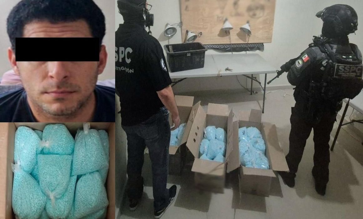 Durante los cateos, las autoridades localizaron más de 270 kilogramos de fentanilo en distintas presentaciones, incluyendo polvo y pastillas. Según estimaciones oficiales, esta cantidad equivale aproximadamente a 14 millones de dosis que no llegarán al mercado ilegal.