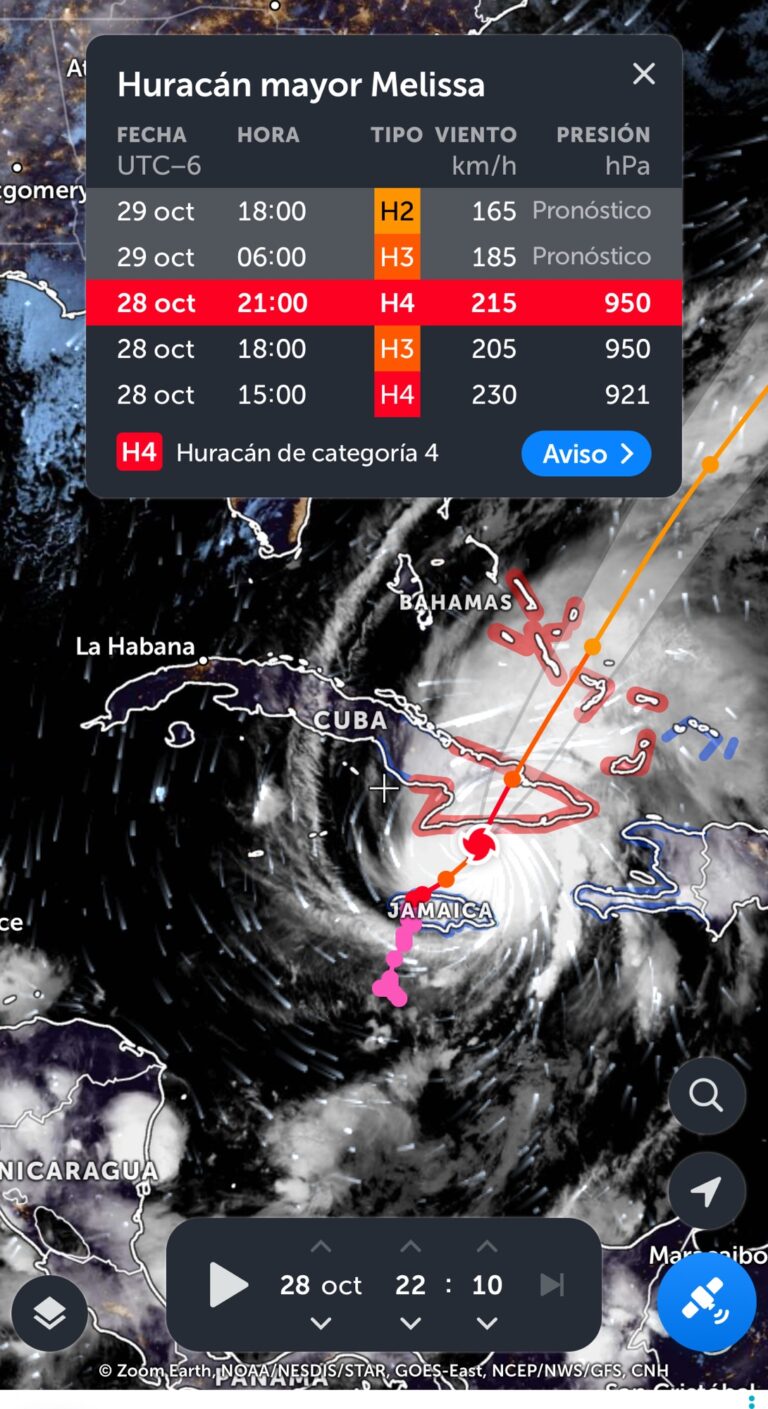 El Centro Nacional de Huracanes de Estados Unidos (NHC) informó que Melissa alcanzó una presión mínima de 892 milibares al tocar tierra, un nivel comparable con los grandes huracanes del Atlántico.